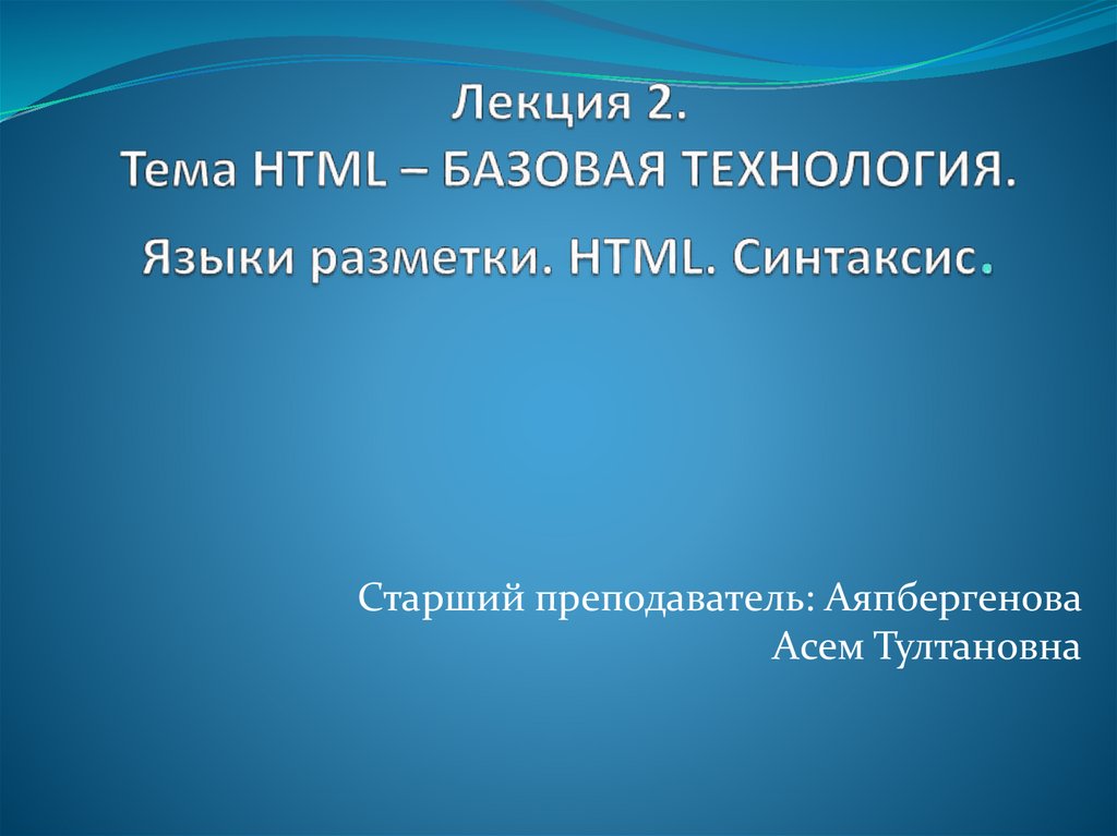 Старший преподаватель: АяпбергеноваАсем Тултановна