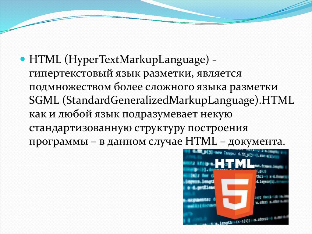 HTML (HyperTextMarkupLanguage) -гипертекстовый язык разметки, является