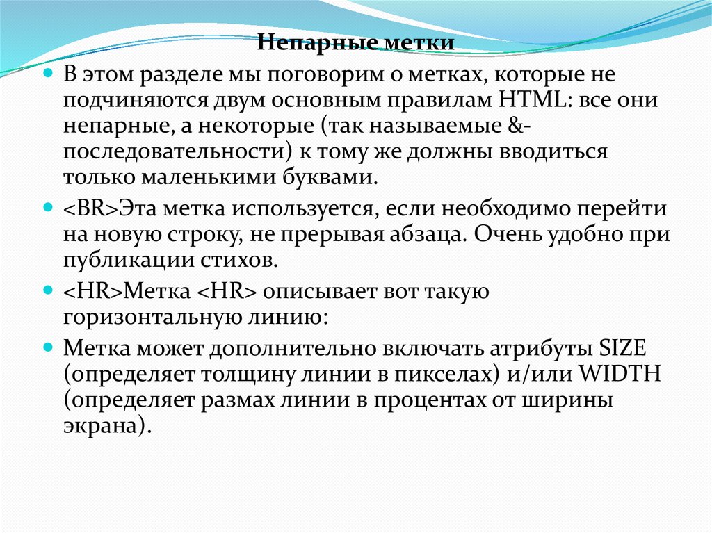 Непарные меткиВ этом разделе мы поговорим о метках, которые не
