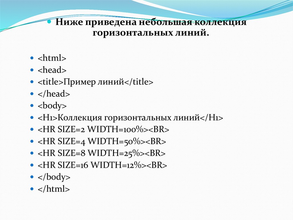 Ниже приведена небольшая коллекциягоризонтальных линий.