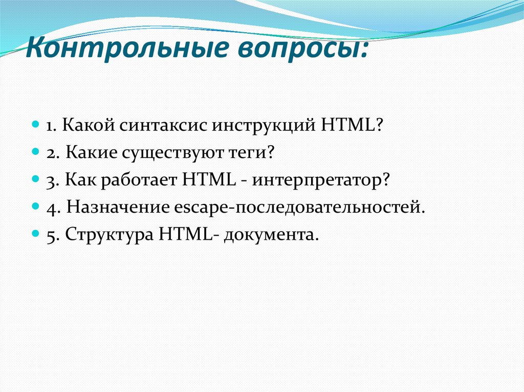 Контрольные вопросы:1. Какой синтаксис инструкций HTML?