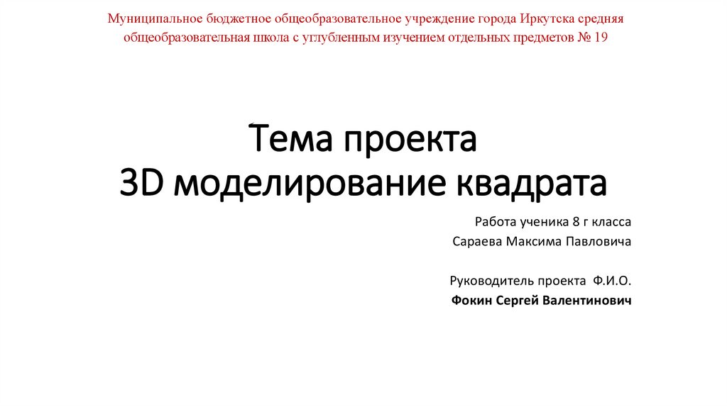 Муниципальное бюджетное общеобразовательное учреждение города Иркутска средняяобщеобразовательная школа с углубленным изучением отдельных предметов № 19