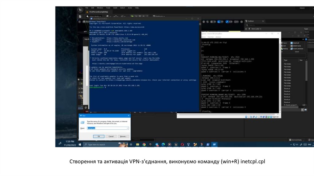 Створення та активація VPN-з'єднання, виконуємо команду (win+R) inetcpl.cpl