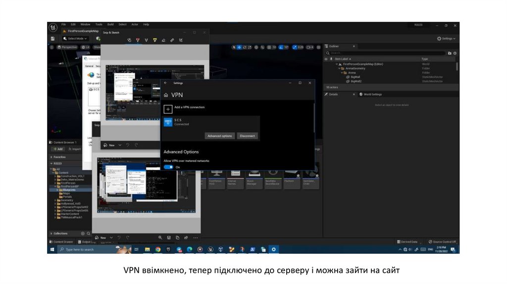 VPN ввімкнено, тепер підключено до серверу і можна зайти на сайт