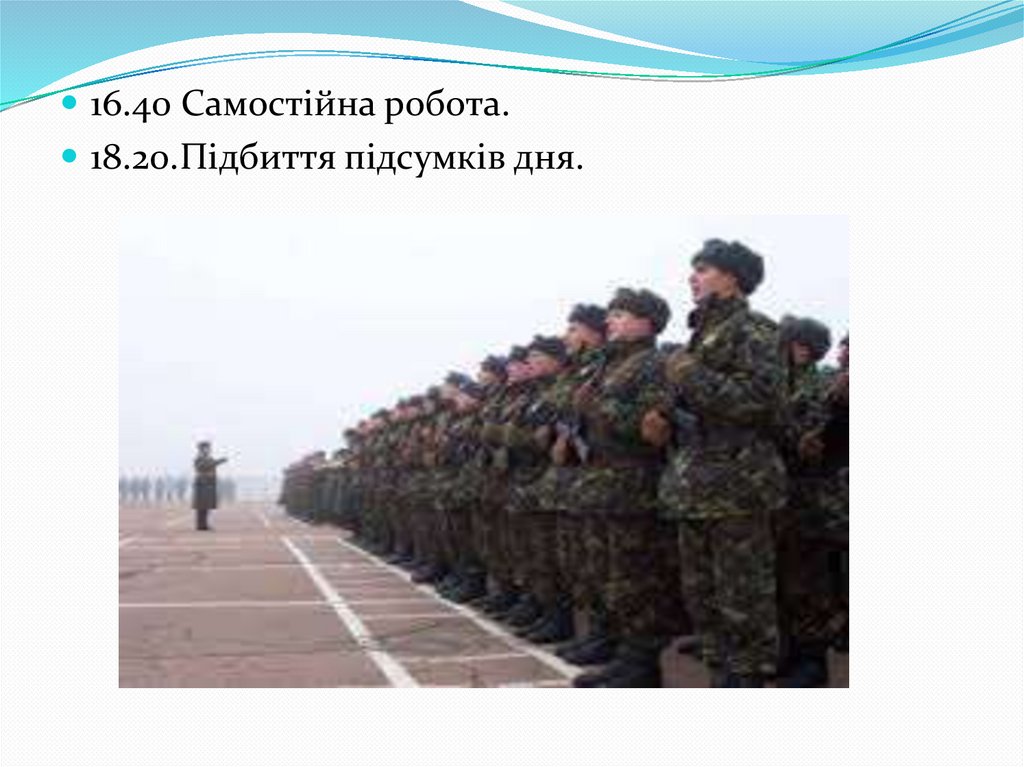 16.40 Самостійна робота.18.20.Підбиття підсумків дня.