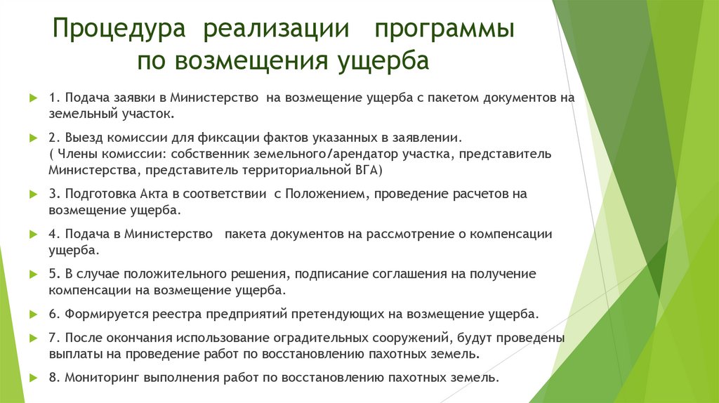 Процедура реализации программыпо возмещения ущерба