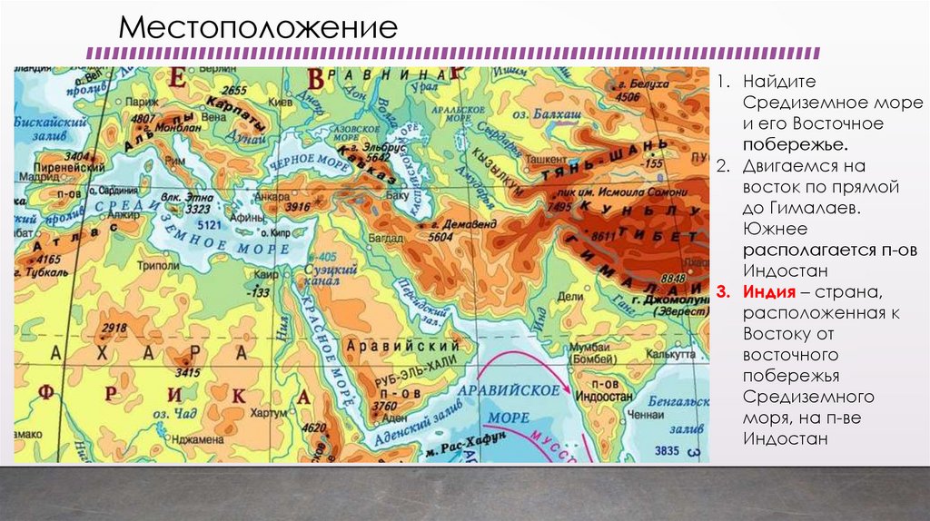 • Рельеф п-ва Индостан