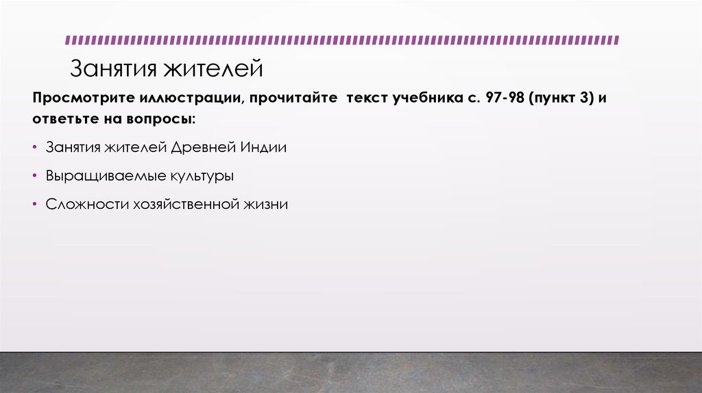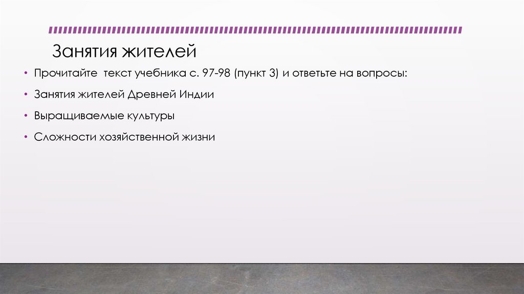 Занятия жителей• Прочитайте текст учебника с. 97-98 (пункт 3) и ответьте на вопросы: