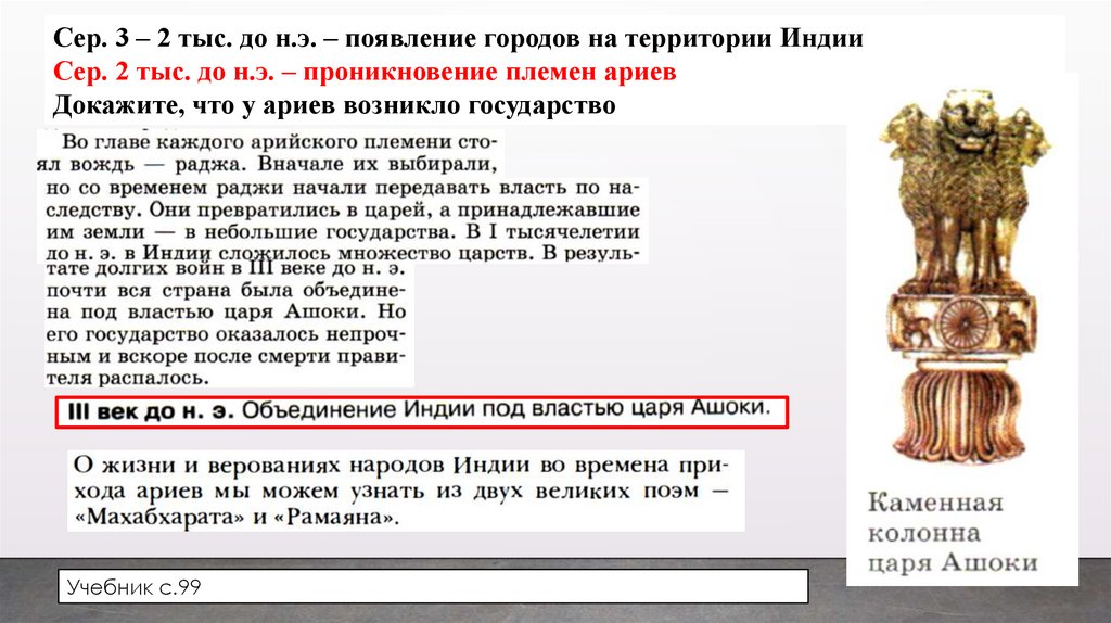 Сер. 3 – 2 тыс. до н.э. – появление городов на территории ИндииСер. 2 тыс. до н.э. – проникновение племен ариев