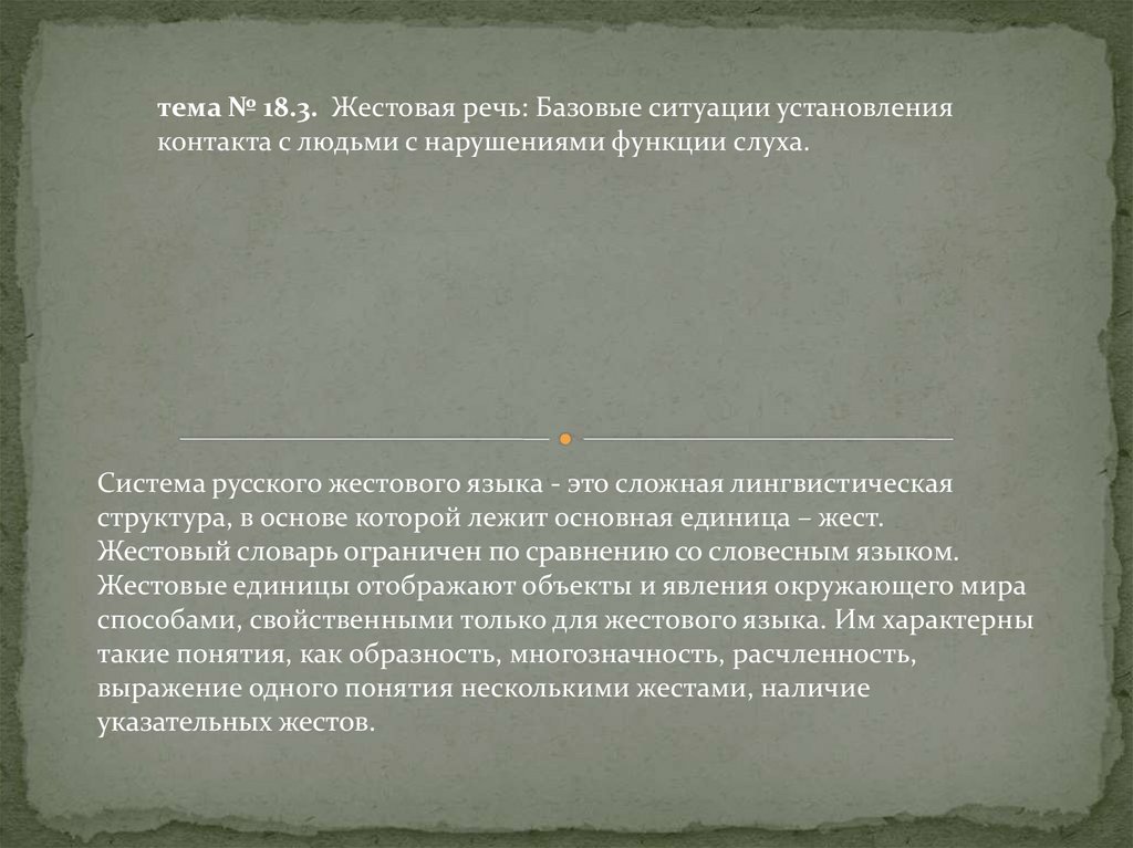 тема № 18.3. Жестовая речь: Базовые ситуации установленияконтакта с людьми с нарушениями функции слуха.