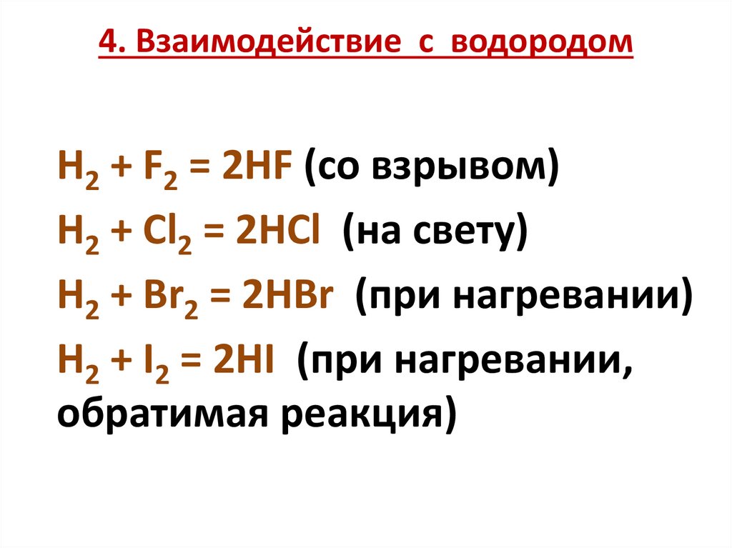 4. 4. Взаимодействие с водородом