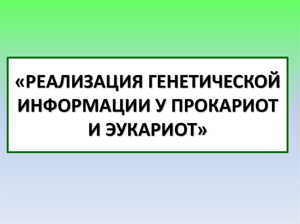 «РЕАЛИЗАЦИЯ ГЕНЕТИЧЕСКОЙИНФОРМАЦИИ У ПРОКАРИОТ