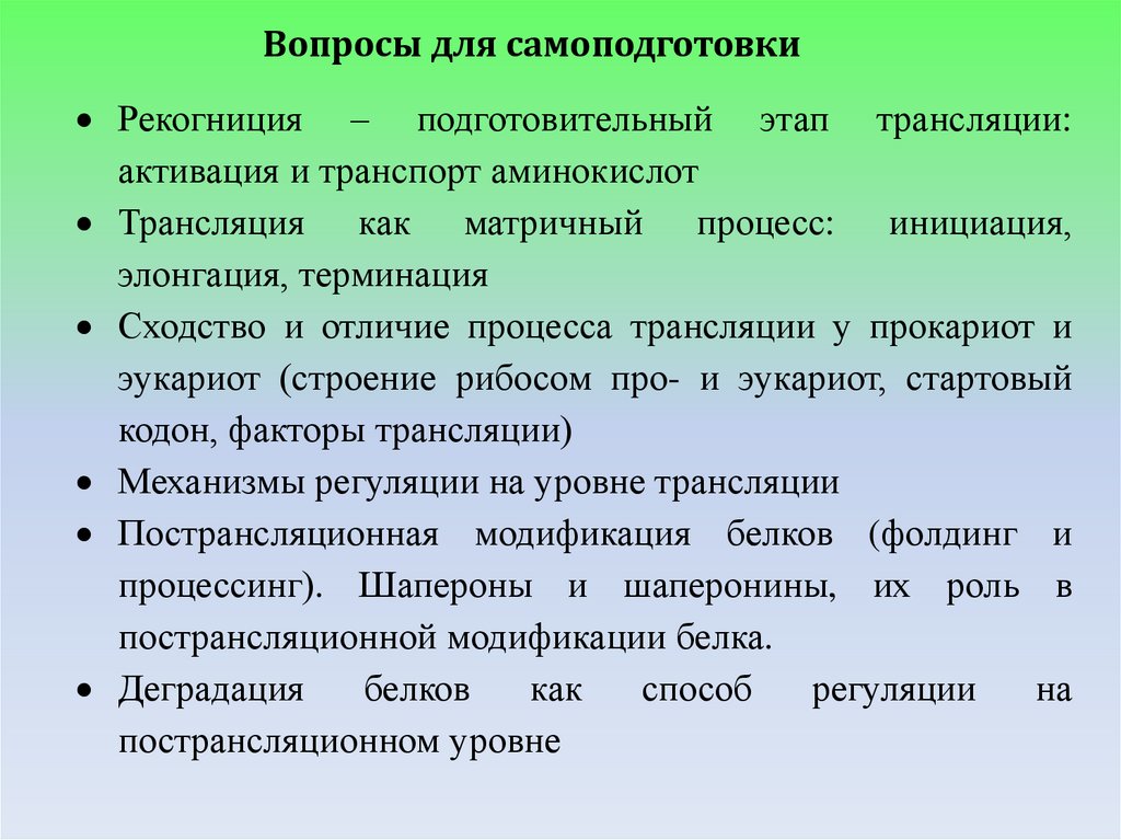 Вопросы для самоподготовкиРекогниция – подготовительный этап трансляции: