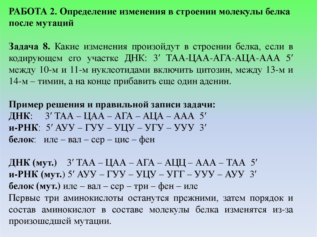 РАБОТА 2. Определение изменения в строении молекулы белкапосле мутаций