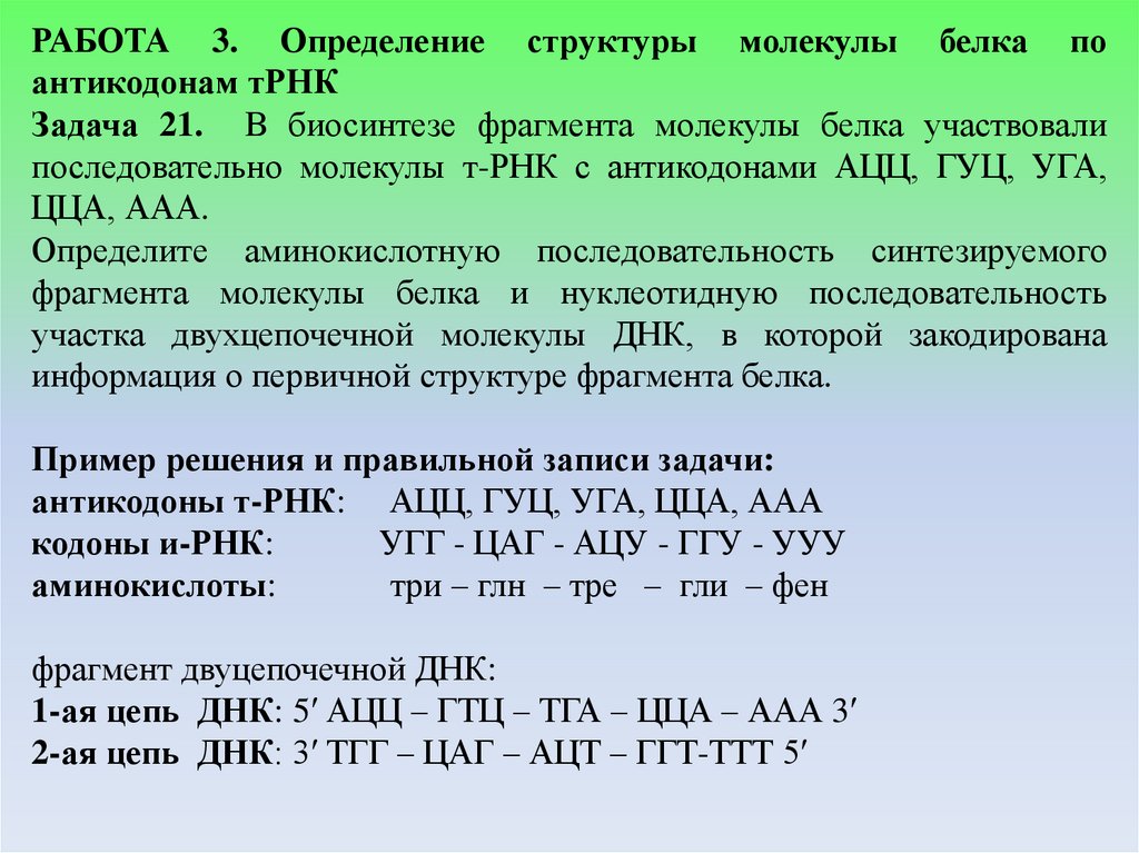Задача 21. В биосинтезе фрагмента молекулы белка участвовали