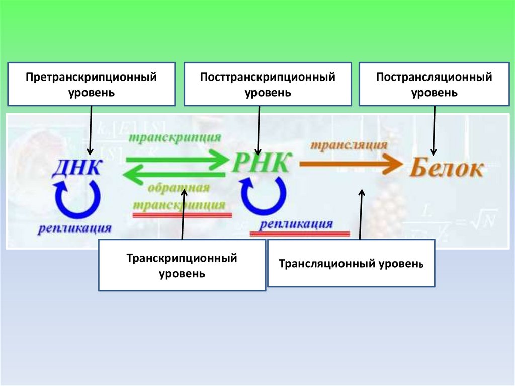 Этапы реализации генетической информацииСистемы регуляции экспрессии генов могут действовать на разных этапах реализации