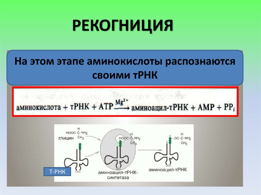 РЕКОГНИЦИЯНа этом этапе аминокислоты распознаются