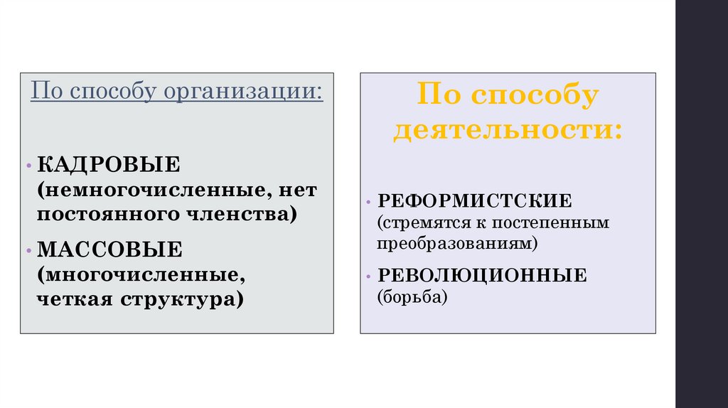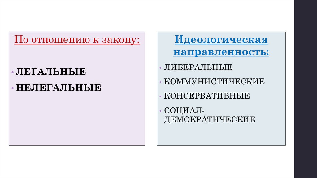 • Классификация (виды) политических партий.