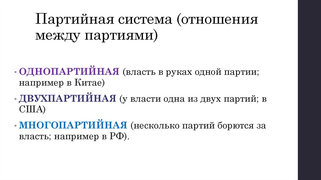 • Разновидности партийных систем.