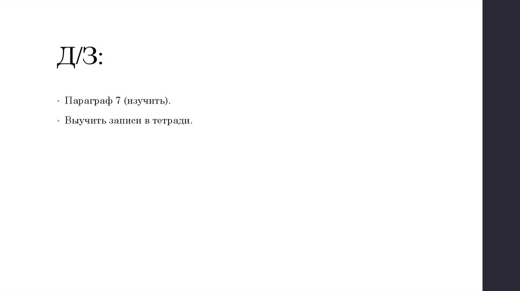 Д/З:• Параграф 7 (изучить).