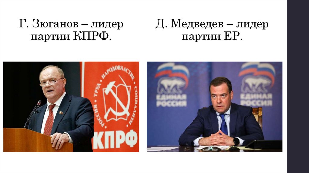 Г. Зюганов – лидерпартии КПРФ.