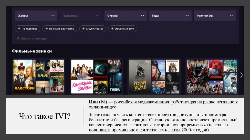 Иви (ivi) — российская медиакомпания, работающая на рынке легальногоонлайн-видео.