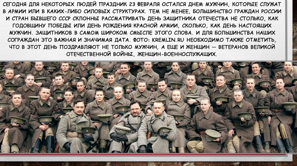 СЕГОДНЯ ДЛЯ НЕКОТОРЫХ ЛЮДЕЙ ПРАЗДНИК 23 ФЕВРАЛЯ ОСТАЛСЯ ДНЕМ МУЖЧИН, КОТОРЫЕ СЛУЖАТВ АРМИИ ИЛИ В КАКИХ-ЛИБО СИЛОВЫХ СТРУКТУРАХ. ТЕМ НЕ МЕНЕЕ, БОЛЬШИНСТВО ГРАЖДАН РОССИИ