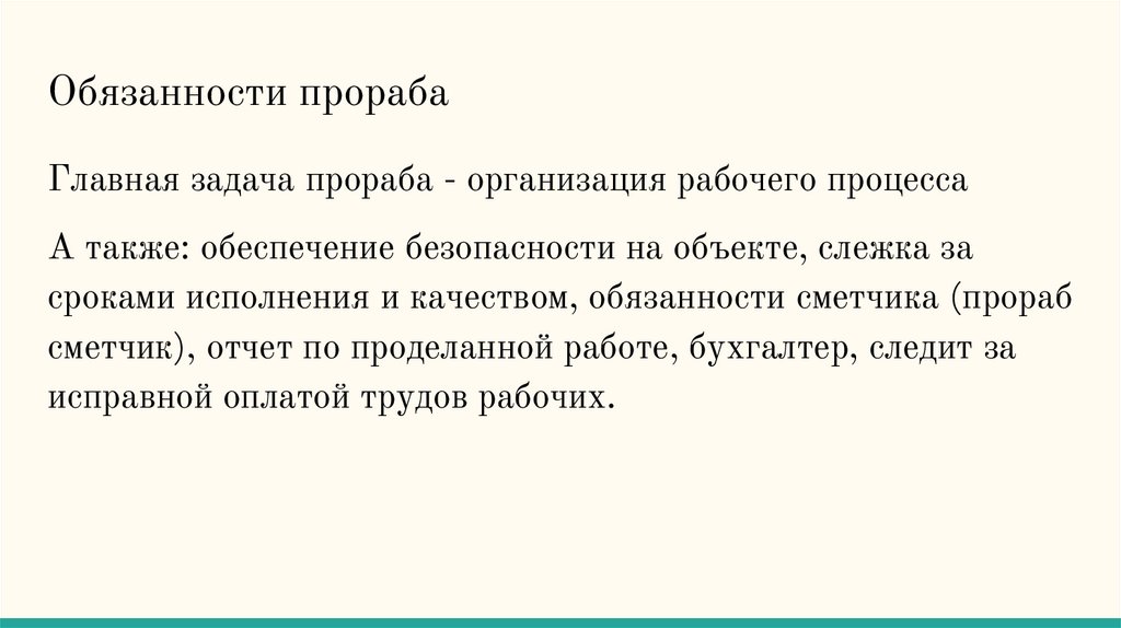 Обязанности прорабаГлавная задача прораба - организация рабочего процесса