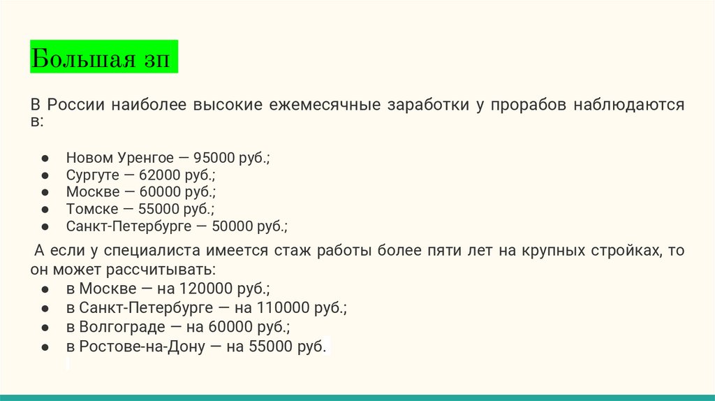Большая зпВ России наиболее высокие ежемесячные заработки у прорабов наблюдаются