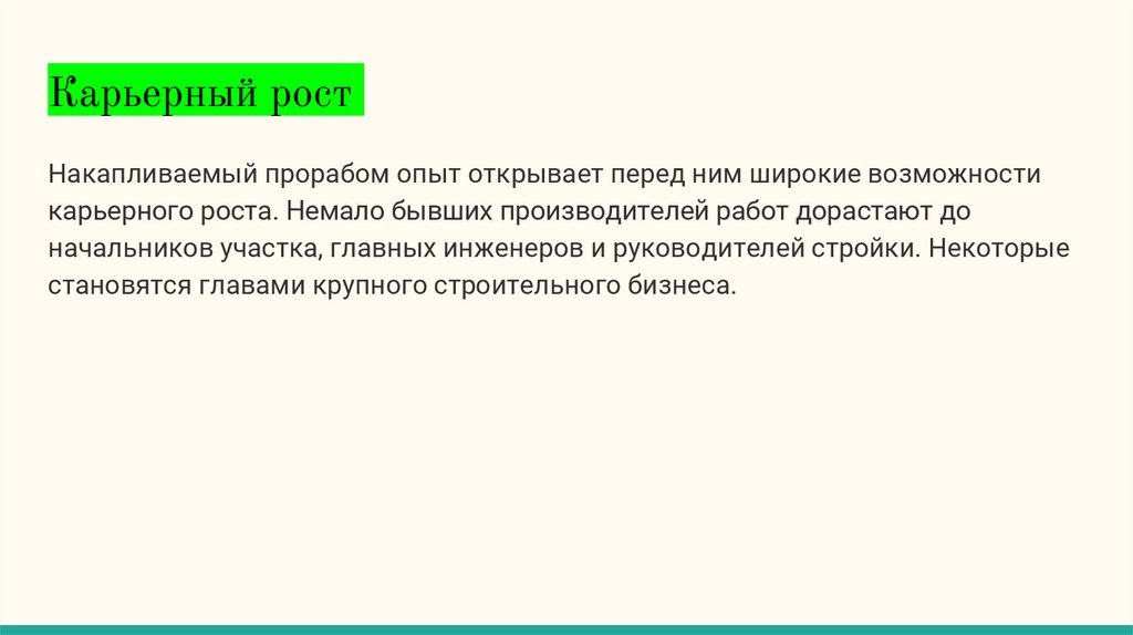Карьерный ростНакапливаемый прорабом опыт открывает перед ним широкие возможности