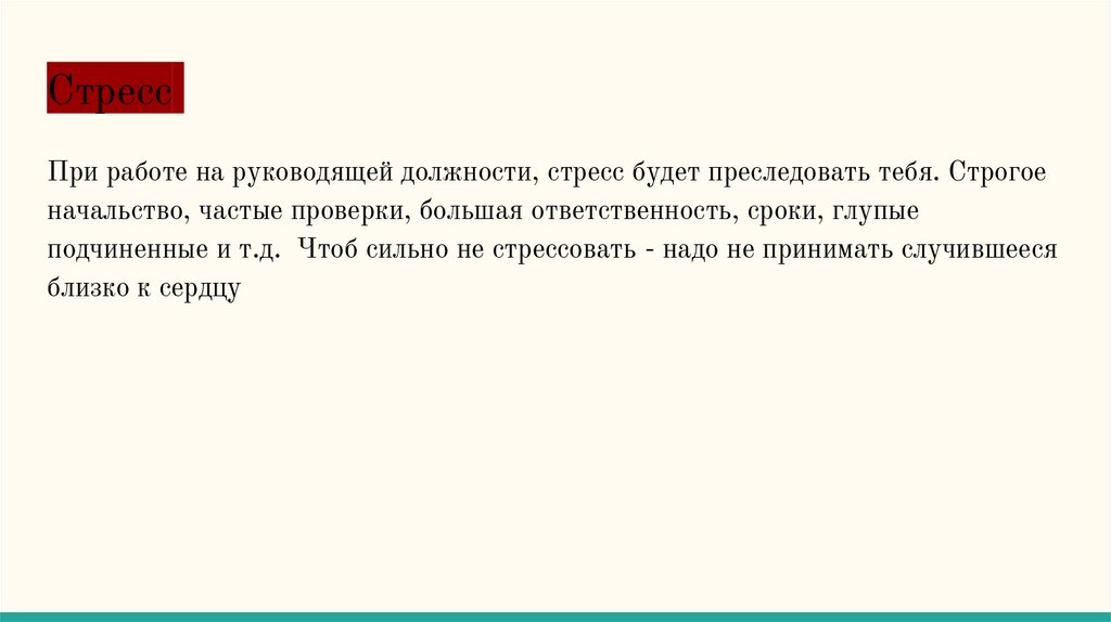 СтрессПри работе на руководящей должности, стресс будет преследовать тебя. Строгое