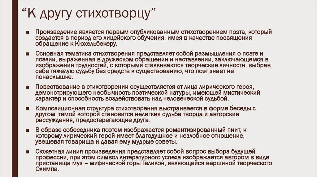 “К другу стихотворцу”■ Произведение является первым опубликованным стихотворением поэта, который