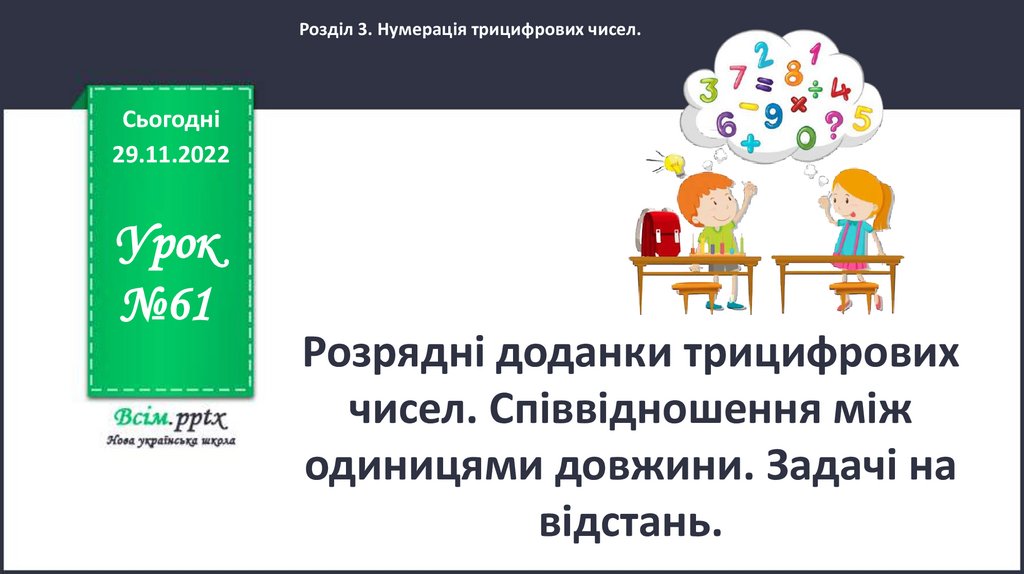 Розділ 3. Нумерація трицифрових чисел.Сьогодні