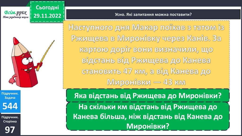 Прочитай умову. Сформулюй до неї два запитання. Розв’яжи задачу