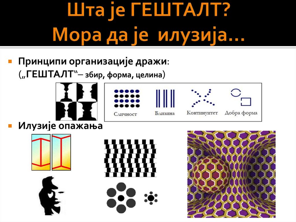 Принципи организације дражи:(„ГЕШТАЛТ“– збир, форма, целина)