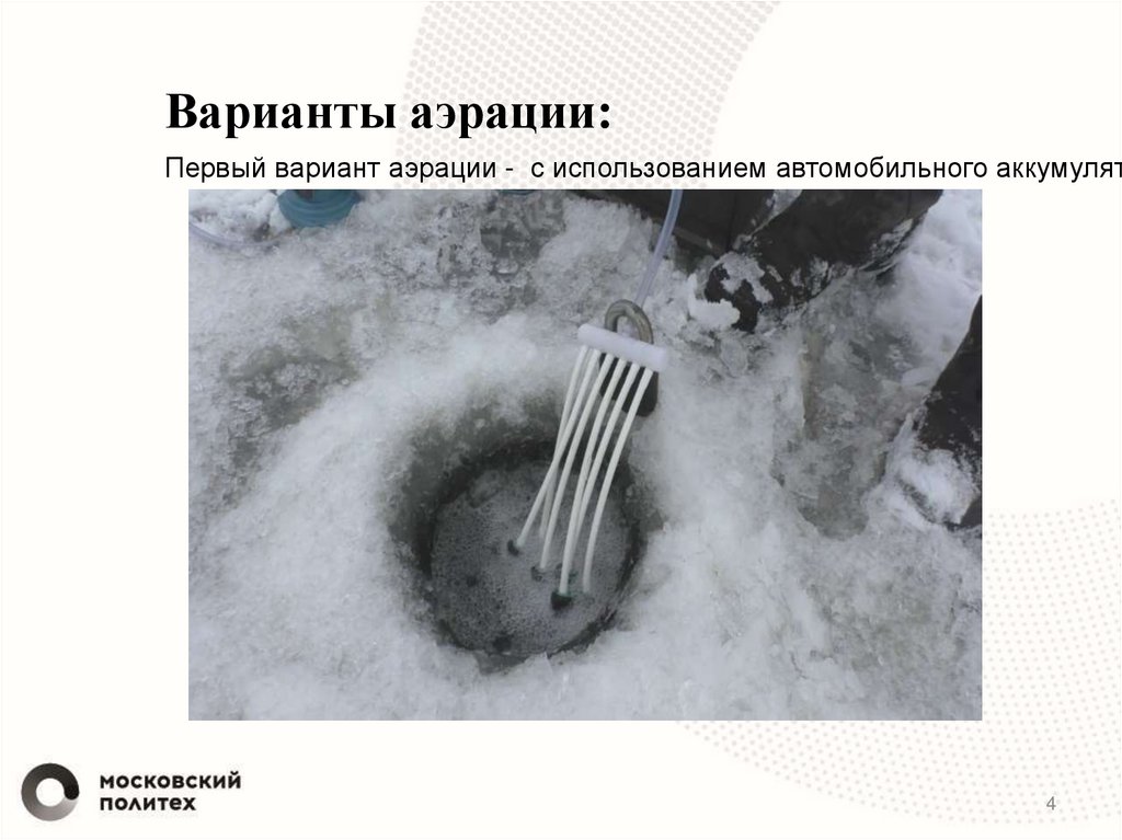 Варианты аэрации:Первый вариант аэрации - с использованием автомобильного аккумулят