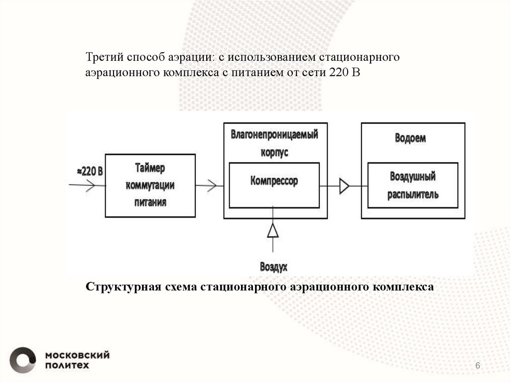 Третий способ аэрации: с использованием стационарногоаэрационного комплекса с питанием от сети 220 В