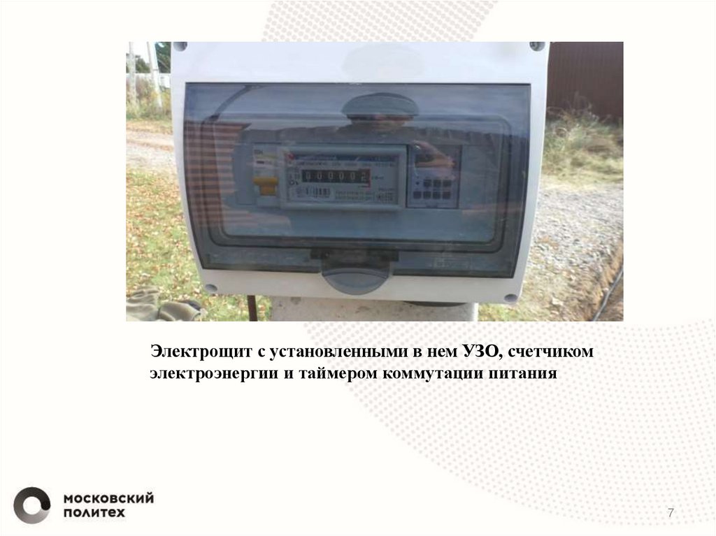 Электрощит с установленными в нем УЗО, счетчикомэлектроэнергии и таймером коммутации питания