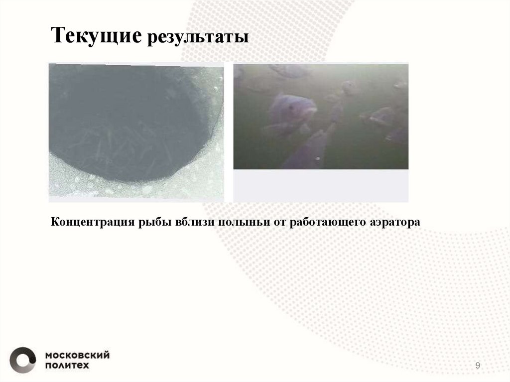 Текущие результатыКонцентрация рыбы вблизи полыньи от работающего аэратора