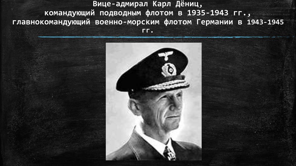Вице-адмирал Карл Дёниц,командующий подводным флотом в 1935-1943 гг.,