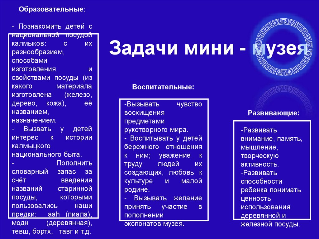 Задачи мини - музея