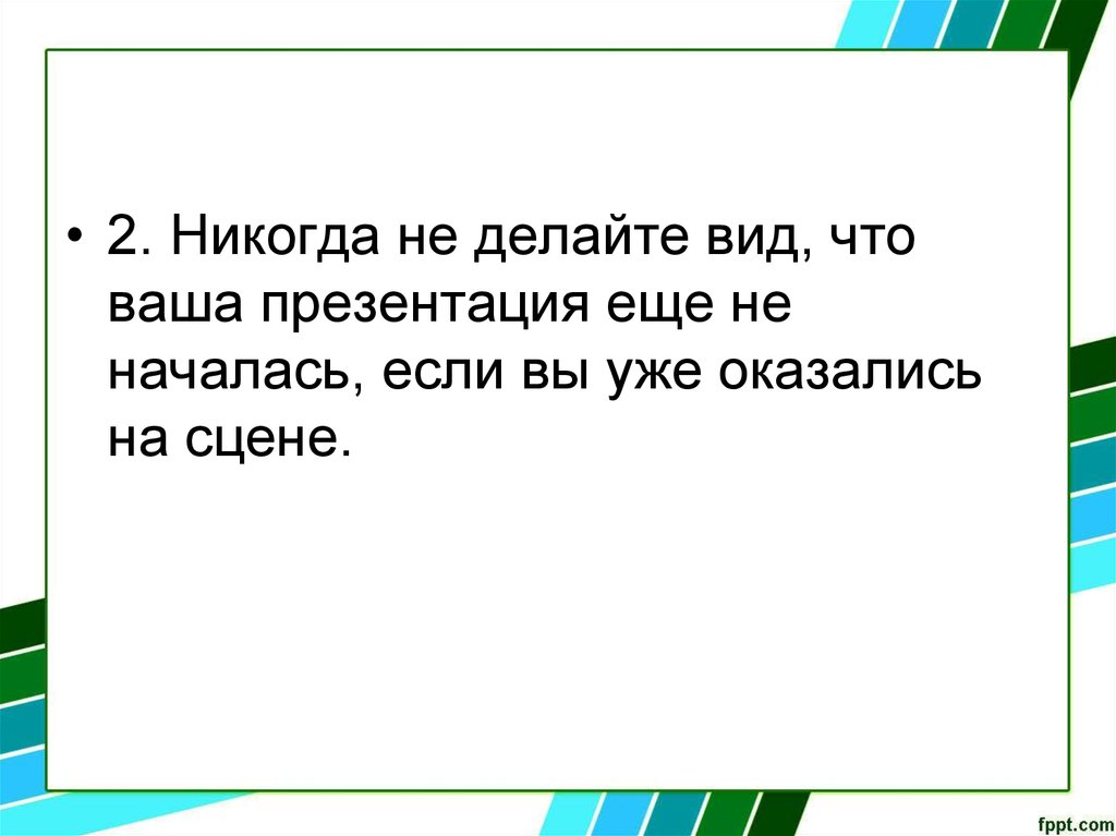 • 2. Никогда не делайте вид, чтоваша презентация еще не