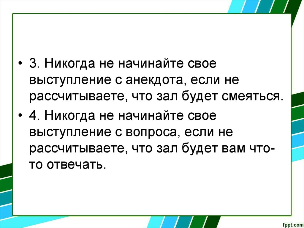 • 3. Никогда не начинайте своевыступление с анекдота, если не