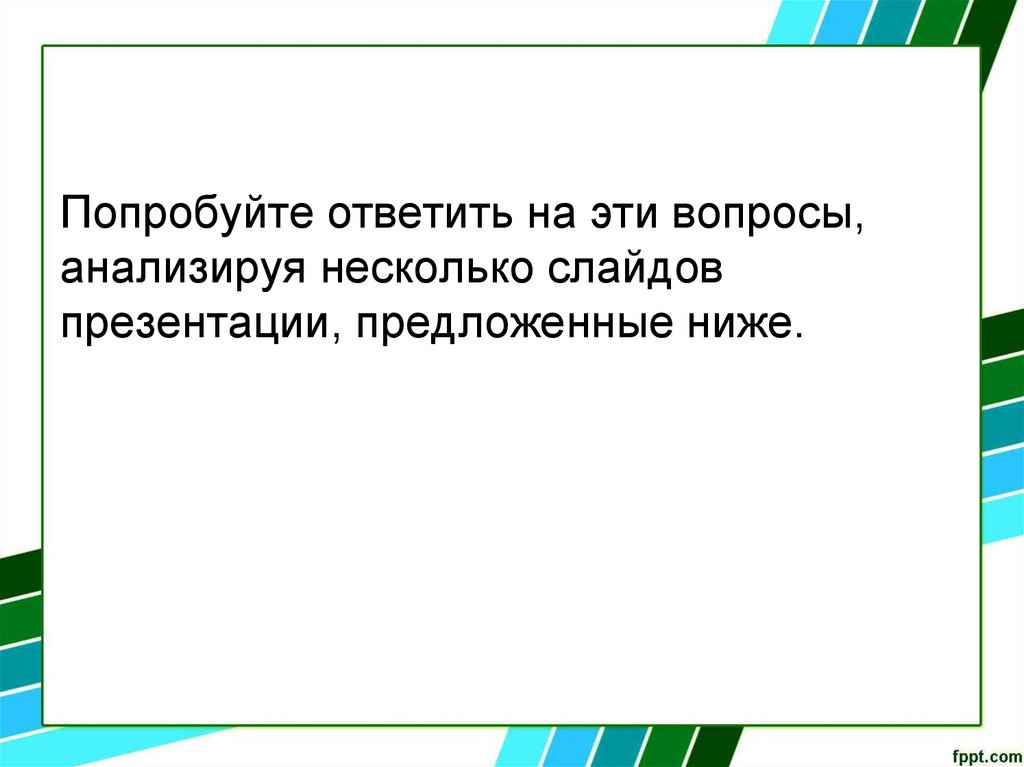 Попробуйте ответить на эти вопросы,анализируя несколько слайдов