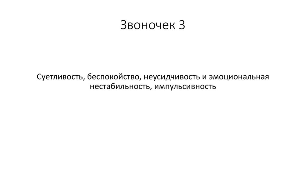 Звоночек 3Суетливость, беспокойство, неусидчивость и эмоциональная