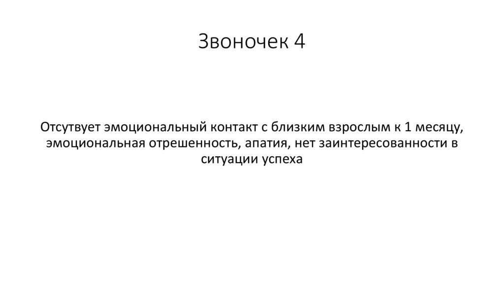 Звоночек 4Отсутвует эмоциональный контакт с близким взрослым к 1 месяцу,