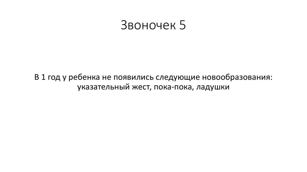 Звоночек 5В 1 год у ребенка не появились следующие новообразования: