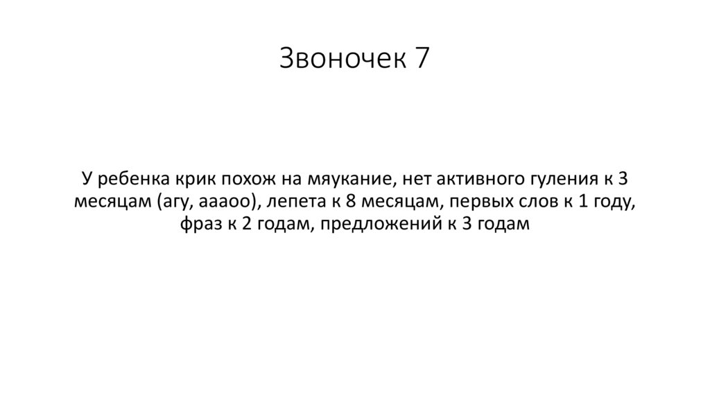 Звоночек 7У ребенка крик похож на мяукание, нет активного гуления к 3