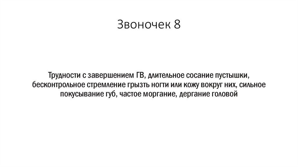 Звоночек 8Трудности с завершением ГВ, длительное сосание пустышки,