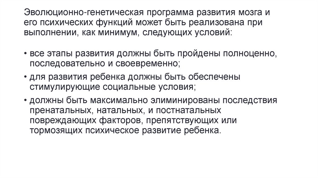 Эволюционно-генетическая программа развития мозга иего психических функций может быть реализована при